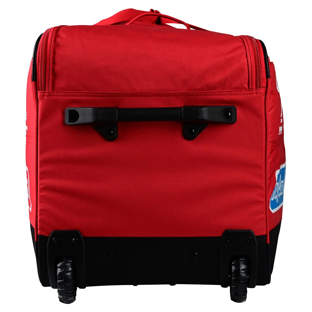 The Meridian Gear Bag started off as a blank piece of paper project. It has been engineered specifically around the key items the bag needs to carry and keep organised. Comprised of four specific compartments; a boot/knee brace locker with pull out waterproof lining, padded helmet compartment, integrated goggle vault with a separate stash for lenses, roll-offs and a generously sized main section that can handle all your protective gear with ample room for multiple kits for that race day assault.